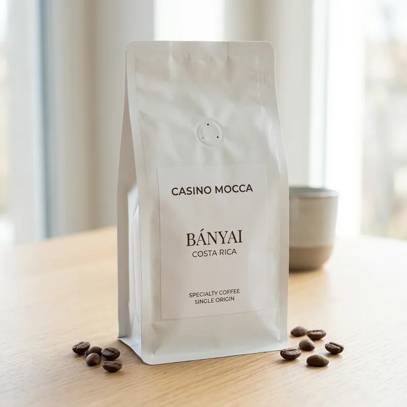 Cascara fra Bányai Speciality Coffee Concept, lavet af omhyggeligt udvalgte kaffe-kirsebær fra Caturra og Villa Sarchi arabica-varianterne. Efter selektion blev kirsebærrene først tørret på terrasser og senere på hævede senge. Bányai farmenes miljøvenlige landbrug kombinerer lokal viden med moderne videnskabelige metoder. OBS: Billede er AI-genereret og ikke af det faktiske produkt.