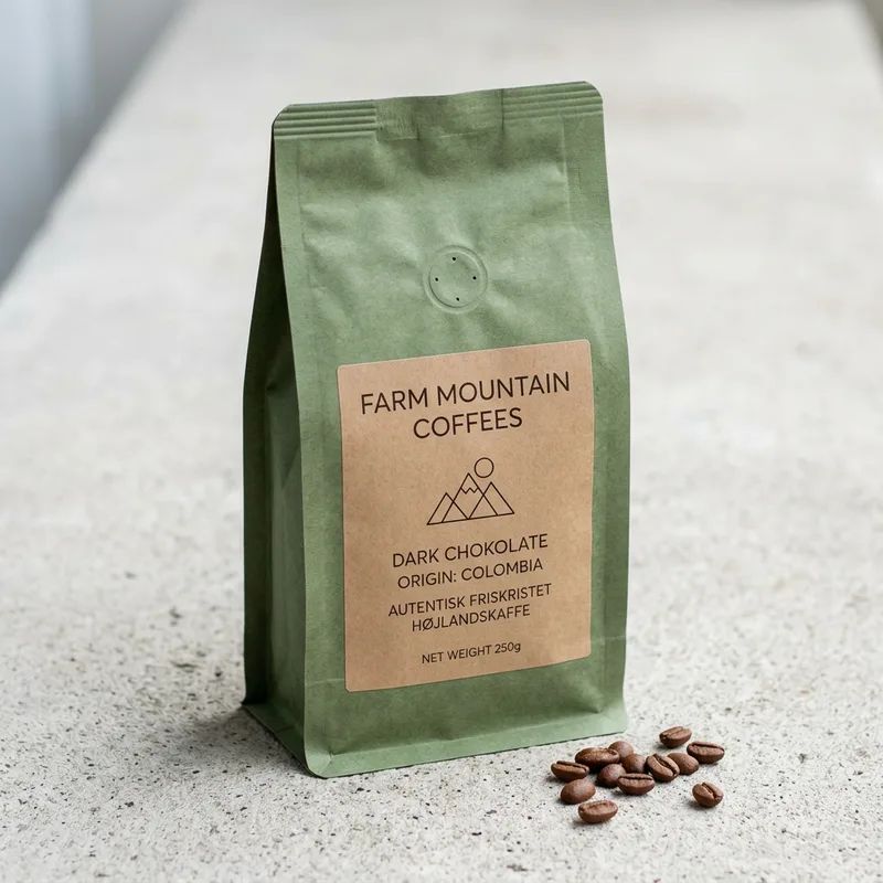 En fyldig og intens kaffe med noter af mørk chokolade og en let syrlighed. OBS: Billede er AI-genereret og ikke af det faktiske produkt.