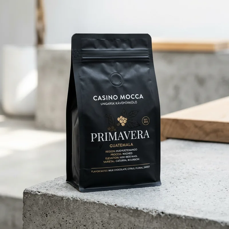 Kaffebønnerne er høstet af småbønder i Huehuetenango-regionen nær San Antonio Huista. Bønnerne er blevet vasket og fermenteret spontant. OBS: Billede er AI-genereret og ikke af det faktiske produkt.