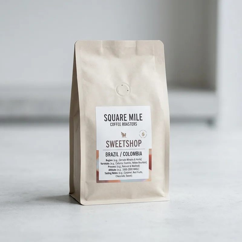 Sweetshop er en espresso-blend, der kombinerer brasilianske og colombianske kaffer for at skabe en sød og kompleks smagsprofil. Noter af chokolade, nødder og røde frugter gør denne kaffe til en fornøjelse. OBS: Billede er AI-genereret og ikke af det faktiske produkt.