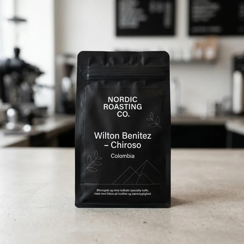 Denne kaffe kommer fra Huila-regionen i Colombia og er dyrket af varianterne Caturra og Castillo. Den gennemgår en vasket proces og er ristet til medium niveau, hvilket gør den velegnet til filterbrygning. Hver pakke indeholder 250 gram. OBS: Billede er AI-genereret og ikke af det faktiske produkt.